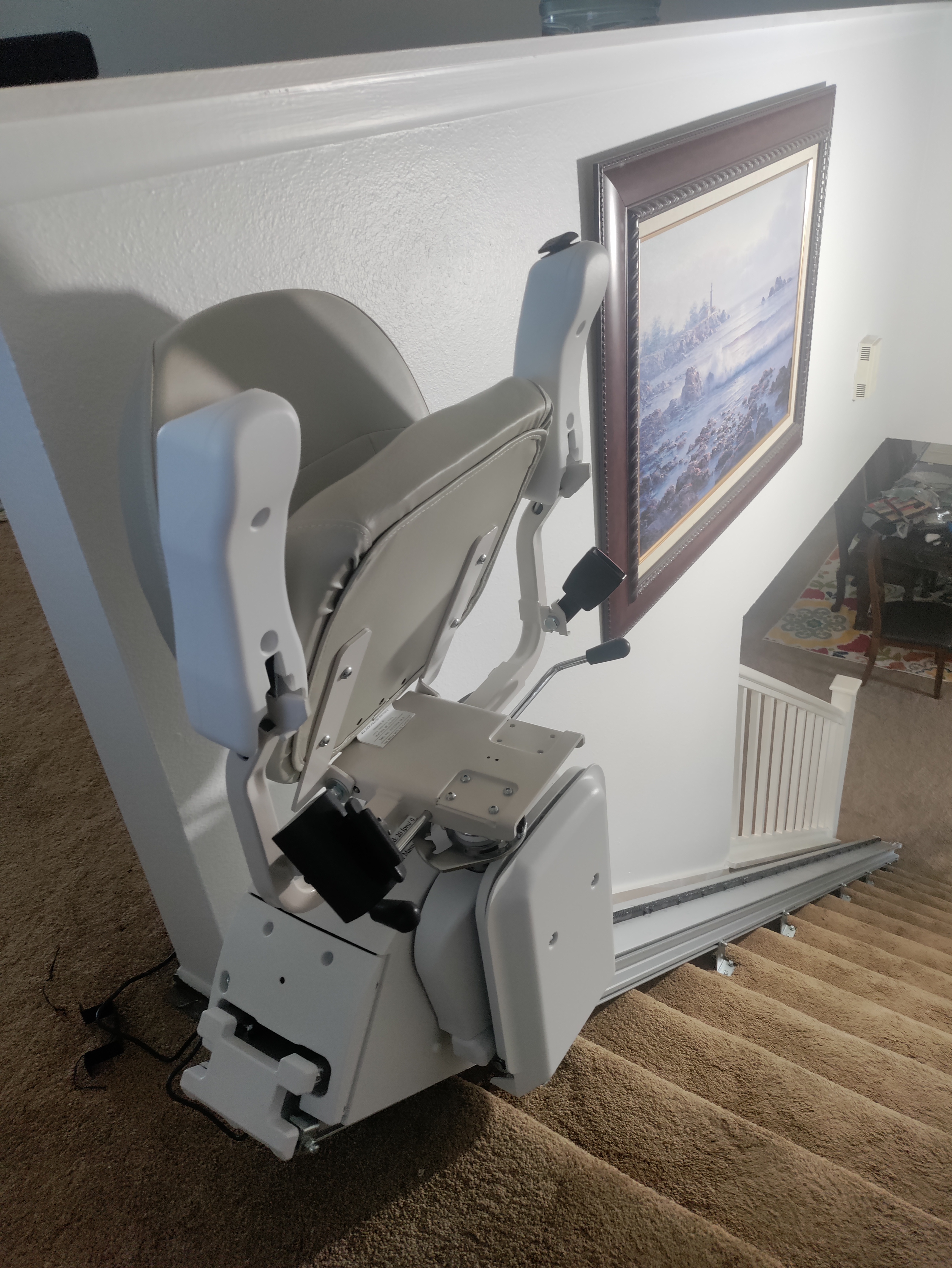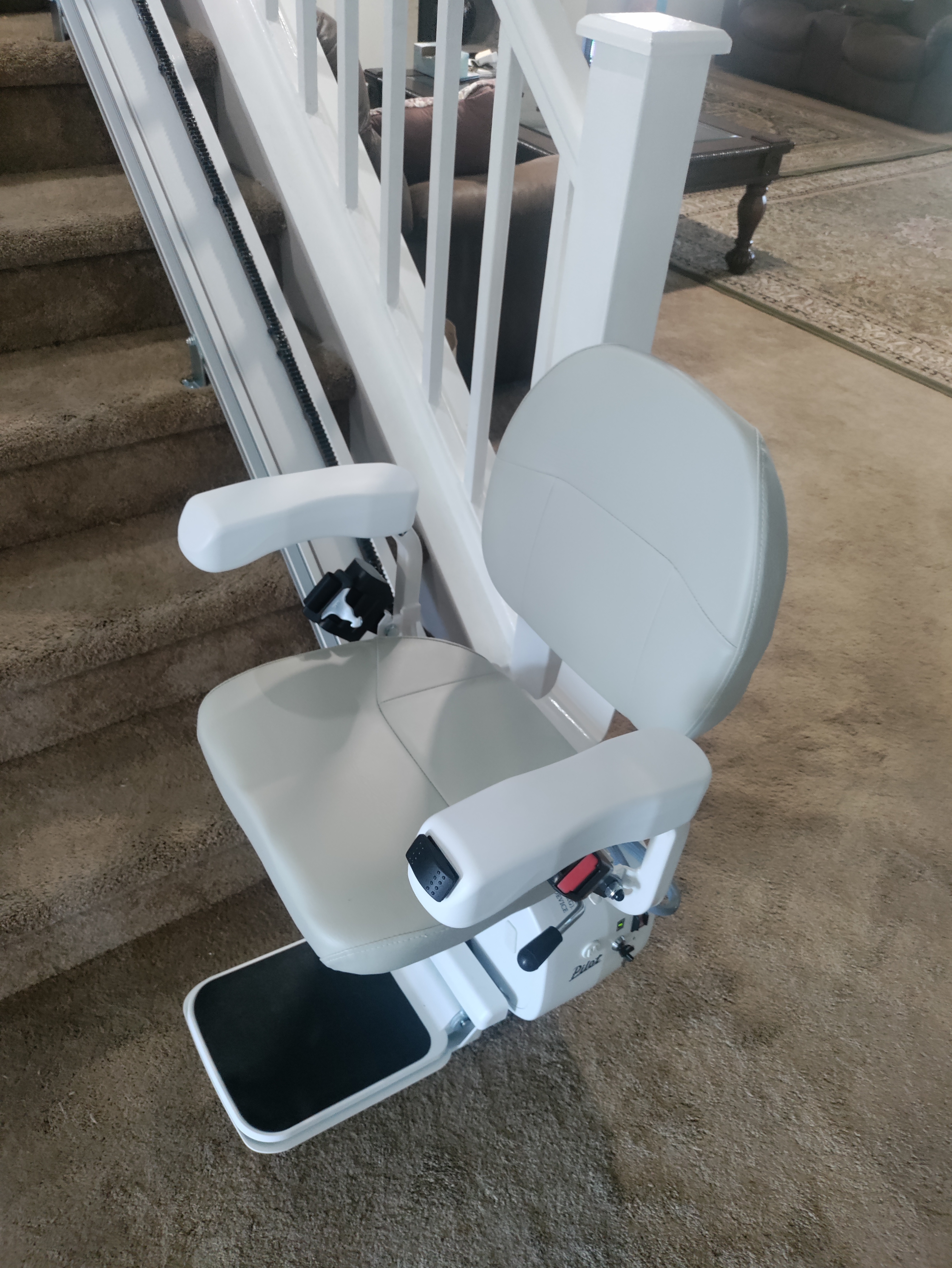 The Crest HD Stair Lift delivers exceptional versatility, heavy-duty performance, and advanced safety features. With a 350 lb. weight capacity, its universal design supports both left and right-side installation, while adjustable armrest width, seat height, and toggle control offer customizable comfort. A 2-position swivel seat ensures safe and easy transfers.